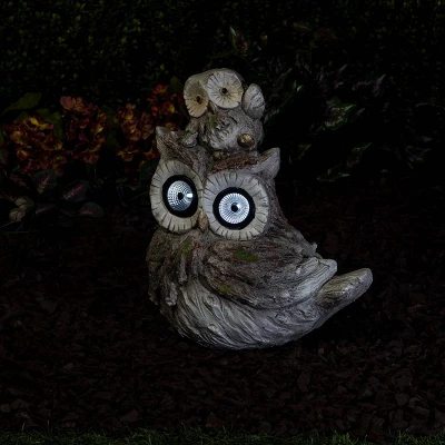 Welcome your house guests with the warm and inviting 15″ tall Outdoor Solar Powered Owl and Owlet Yard Statue with LED Lights from Alpine Corporation. This statue features a wide-eyed owl and its owlet that provide a unique and decorative playful addition to your home’s exterior décor. The lighted yard art is powered by solar energy to keep your outdoor yard statue lit up and features a pair of warm white LED lights located in the adult owl’s eyes. Constructed from durable magnesia, the yard art is made tough for outdoor use and is weather-resistant for long-lasting, quality use on your porch, patio, or flowerbeds. Add one or multiple statues to create an enchanted garden display. The yard décor is perfect for display on pathways, entryways, decks, courtyards, and outdoor living spaces. The outdoor garden statue measures 12″L x 9″W x 15″H to fit almost any outdoor space and includes a one-year manufacturer’s warranty from date of purchase.