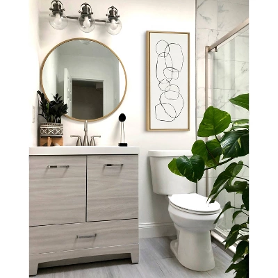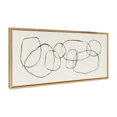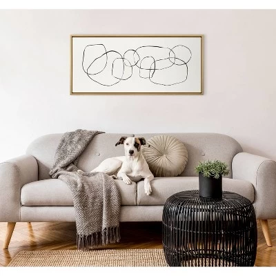 Create an enigmatic aesthetic in your home that exudes modern minimalist sophistication with this abstract art piece. Framed in the USA in Waunakee, Wisconsin, this floating canvas art will be a pleasure to look at every day in your living room, bedroom, office, or any room in the home. This art print also makes an excellent gift for birthdays, holidays, or housewarming parties. Printed on gallery-wrapped canvas and framed with a lightweight polystyrene frame, this wall art has two hangers already attached to the MDF back for easy wall display. The outer dimensions are 40 inches by 18 inches by 1.62 inches. Print Name: “Dancing Circles”