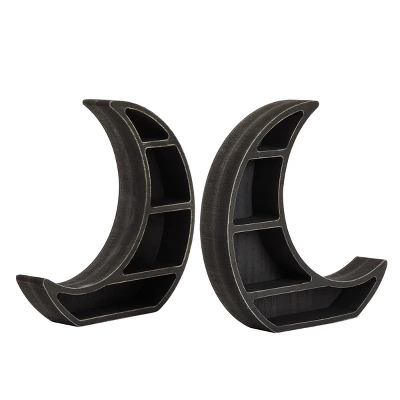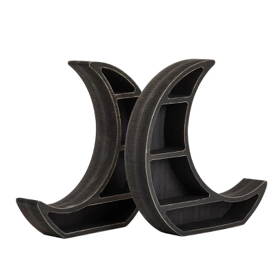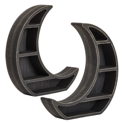 - Comes With: You will receive 2 crescent moon shelf with 4 compartments each to add to your rustic or gothic home decor; NOTE: Wall mounting hardware not included