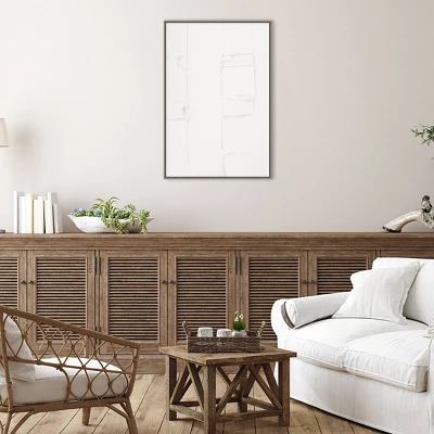 ART DESCRIPTION: In a dedicated minimalist style, this piece offers the barest details of scraped white plaster. Light texture creates hidden shadows around unexpected geometric ridges that stripe and block off sections of the image. This Amanti Art canvas art print was created by 1x Studio III and printed by Amanti Art in Madison WI. The canvas is stretched by hand and finished with a float frame. Individually made using traditional custom framing techniques, it has the quality you would expect from your local frame shop. Because of our attention to detail and focus on artistry, architects, interior designers, and homeowners alike choose this framed canvas artwork to create beautiful living spaces.