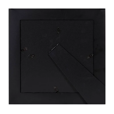 - Watch your cherished photos come to life and add interest to any wall in your home. Each frame has attached metal triangle wall hangers for gallery style wall mount. The back’s design allows you to present your photo arrangements horizontally or vertically. The opening is 8×8 matted down to 4×4. The outside frame dimensions are 10.5×10.5-inches. Comes in a pack of four.