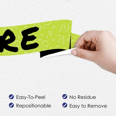 90’s Throwback Wall Decals Backdrop includes 1 sheet of vinyl wall stickers that include letters and shape pieces that form the perfect 90s All That backdrop for your Prom or Birthday Party. Wall Decal sheet measures 50 inches wide by 16.5 inches tall. Pieces range in size from 26.5 x 5.75 inches to 2 x 2 inches. Effortless Decor: The 90’s Throwback stickers are an easy DIY party decoration that will make a big impact at your celebration. Stick them on a flat wall surface to create that picture-perfect setting and then grab your camera to capture all the fun. Easy to Use: 90’s Throwback vinyl decals are easy-to-peel and repositionable. Wall art stickers will adhere to various surfaces including painted walls, plastic, wood, glass, and metal. To use, make sure your surface is clean and dry. Slowly peel the sticker from the paper to avoid tearing and smooth over with your hand. They are also easy to remove, leaving no residue. High-Quality Supply: 90’s Throwback wall stickers come with a quality matte finish and vibrant colors. They are printed on water-resistant professional quality material and will arrive on one full sheet rolled. Made In The USA: 90’s Throwback Wall Decals are designed and manufactured at our Wisconsin facility using materials that are Made in the USA.