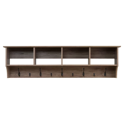 Ideal for an ever expanding household, the 60″ Wide Hanging Entryway Shelf will keep your entryway belongings together in one place! Suitable for any front hallway, foyer or mudroom, the four compartments provide ample storage for everyone in your family. Fill with baskets, gloves, mittens, hats and books. Five large and four small hooks provide plenty of places to hang jackets, coats, hoodies, sweaters, bags and purses. Installs easily with our innovative hanging rail system.