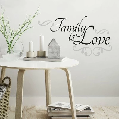 Spruce up your entranceway, hallway, living space, or bedroom with this ‘family is love’ quote wall decal. This simple graphic design will add life to any wall, and show what is important to you. Application is easy: just peel each pre-cut element from the sheet, then apply it to the wall (or any other smooth surface). Our removable and repositionable wall decals can be moved around any time you please, and will never pull off the paint or leave behind a sticky residue. A great gift idea for anyone in the family!