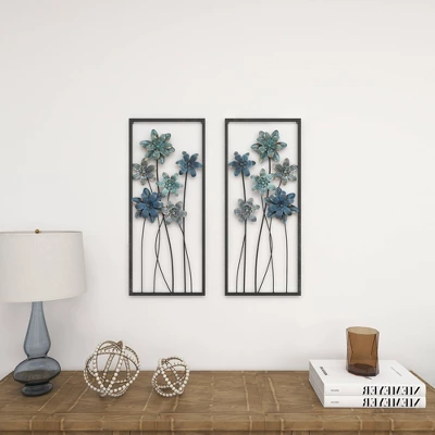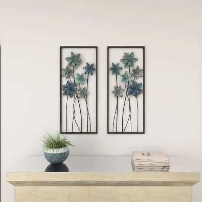 This floral set of wall decorations are ideal for spaces with light-toned interiors that attract natural light. This item ships in 1 carton. Give your wall some life and depth with this botanical wall sculpture décor. Can be hung vertically using the metal rings on the back; nails and screws not included. Suitable for indoor use only. This item ships fully assembled in one piece. This gray colored wall sculptures comes as a set of 2. Traditional style.