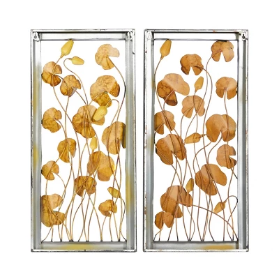 - •This metal wall plaques decor features a rectangular frame with leaves and long stems