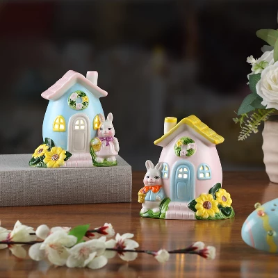 - Nostalgic ceramic bunny houses with LED illuminated windows