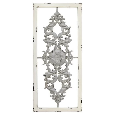 Add character to your home with the Stratton Home Decor Gray Scroll Panel Wall Decor 2 Pack. These antique-inspired pieces have distressed white frames and ornate scroll panels made from distressed grey metal. Display these wall panels among other pieces of traditional decor for an elegant look. Each panel measures 36 inches tall by 0.63 inches deep by 16 inches wide. Compliment your wall colors with this rustic wood and metal panel. The attached keyhole makes easy hanging. This panel is a stylish addition to traditional, rustic, farmhouse chic, industrial, or contemporary-styled home.The rustic panels may have slight variations between the different pieces due to it being handmade and painted by skilled artisans. Add this panel to any bedroom or living room wall and complete your decorative aesthetics with this Stratton Home Decor Gray Scroll Panel Wall Decor 2 Pack.