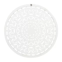 Wood Floral Handmade Intricately Carved Wall Decor With Mandala Design White – Olivia & May