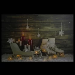 Northlight Large LED Lighted Candles, Ice Skates And Sleigh Christmas Canvas Wall Art 23.5″ X 15.5″