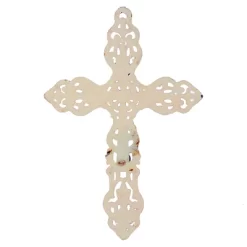 13″ X 8.6″ Decorative Distressed Cast Iron Wall Cross Worn White – Stonebriar Collection